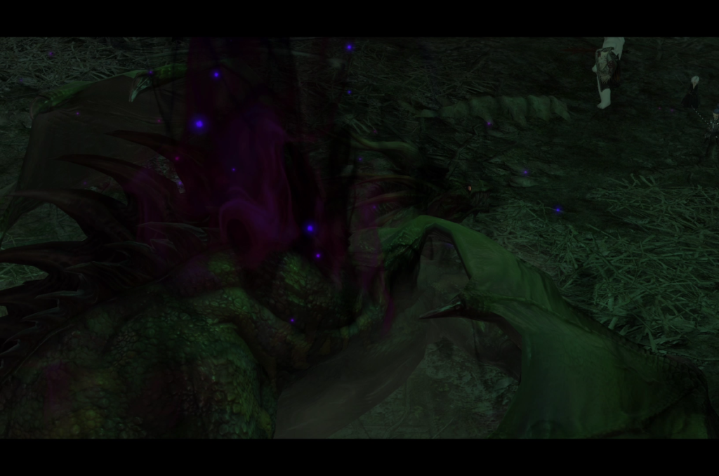 ドレイクも前方範囲攻撃をしてくるので、タンクさんはパーティーメンバーの居ない方に向けます。ゴブリンが乱入してきたら小さいドレイクのターゲットを取って先に倒します。